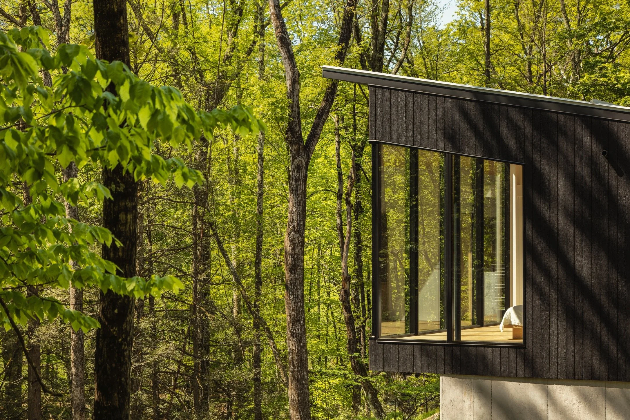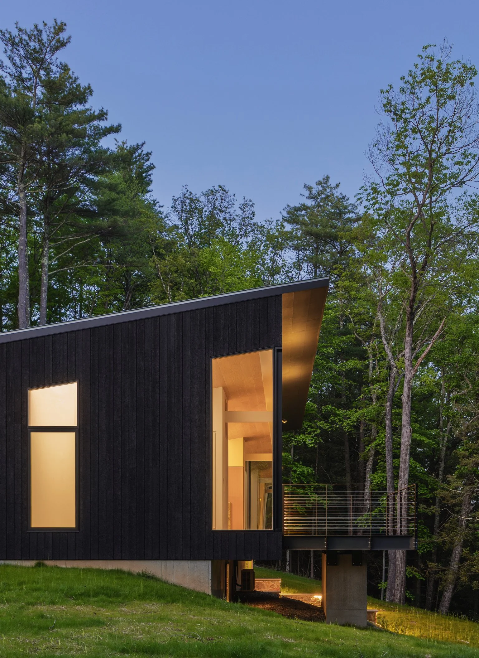 Charred wood (yakisugi) exterior cladding with powder-coated steel details.